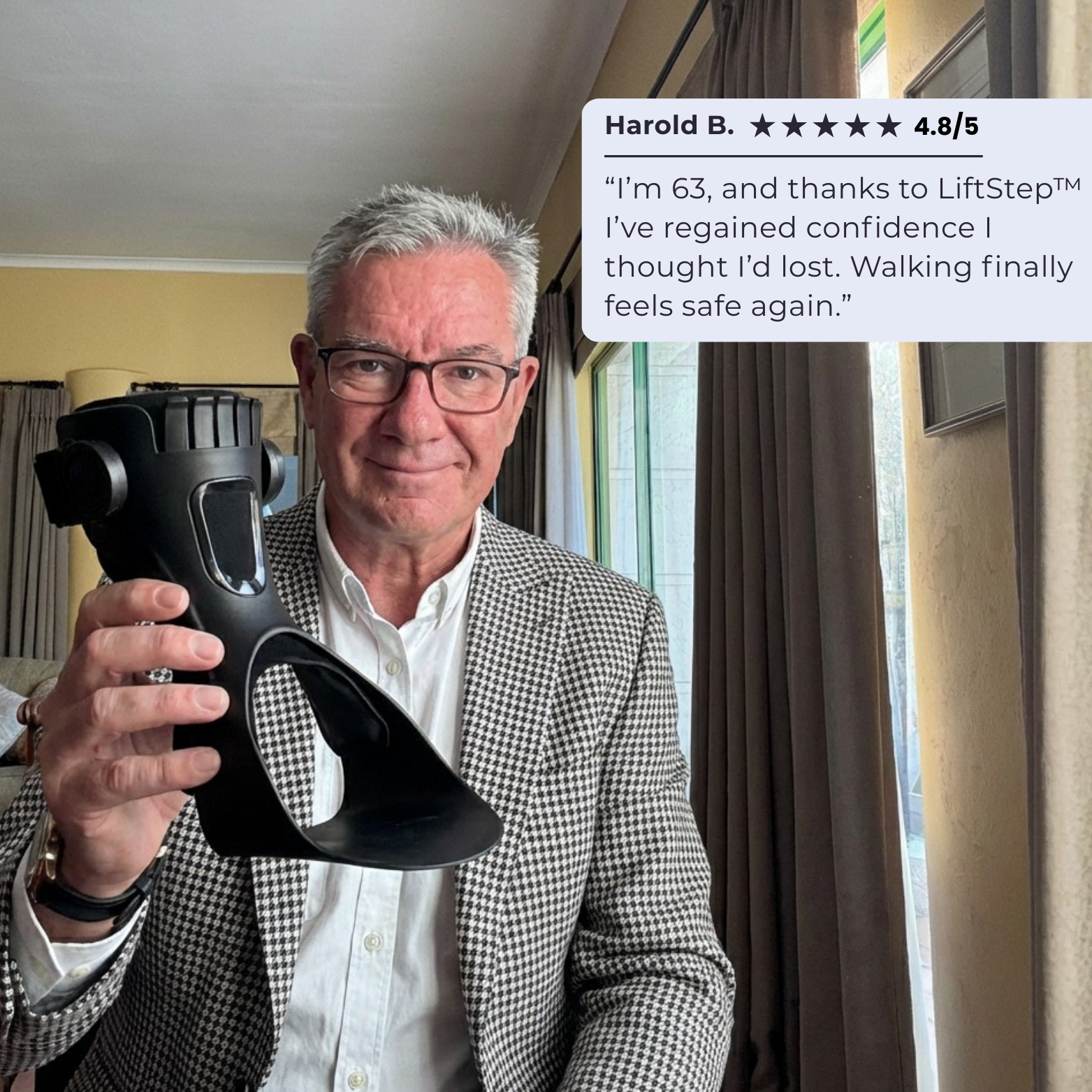 "Before LiftStep, I was always worried I’d catch my toe and stumble. Now my foot stays lifted and my steps feel steady again. It’s comfortable enough to wear every day, and that peace of mind is everything."